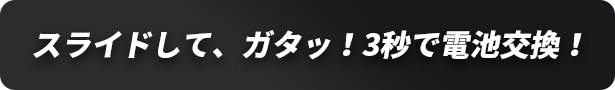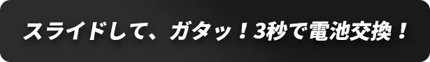 革新的なデザインにより、電池が切れた場合、電池を3秒で交換できます。