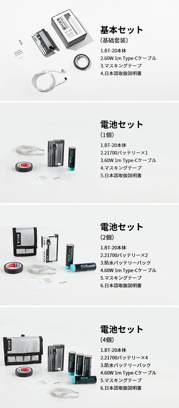 BT-20 は、ほぼすべてのリチウムイオン(フラットトップ) 21700、20700 充電池に対応。 さらに、アダプターを使用して、小型の18650電池も対応可能。