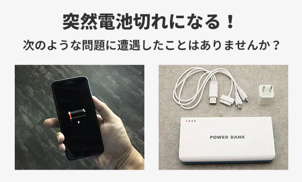 ●他のモバイルバッテリには電池切れて、使用する前に長い充電時間を待たなければなりません。