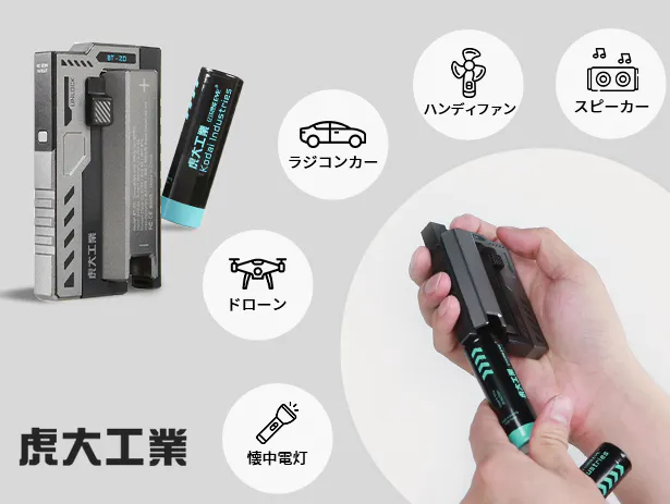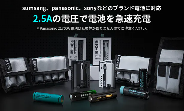 ・21700/20700/18650、様々な型番の電池に対応し、いつでもどこでも簡単に充電!