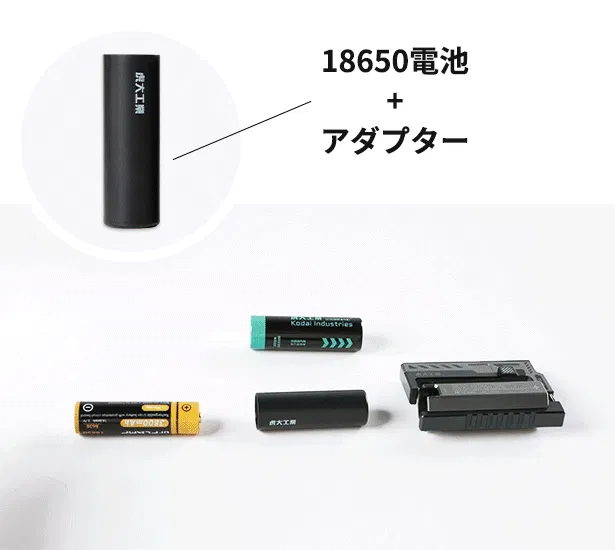 A1:直径 21.7mm、長さ 71.5mm の21700と20700電池は使用可能です。アダプターを使用すれば18650電池も対応可能です。