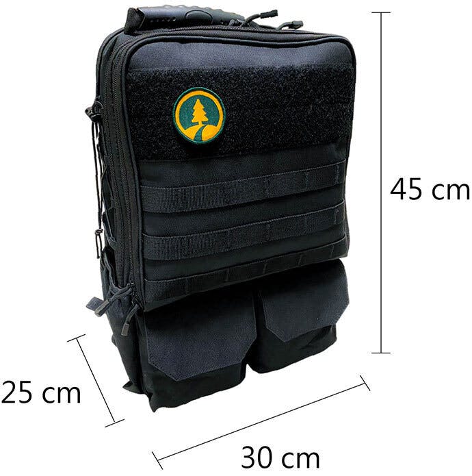 A:バックパックのサイズは45 × 30 × 25cm、容量は30Lで、内蔵のスペアパーツに加えて、ラップトップ(タブレット)、個人用医薬品、一部のドキュメント、厚手のジャケットを収納するのに十分なスペースがあります。