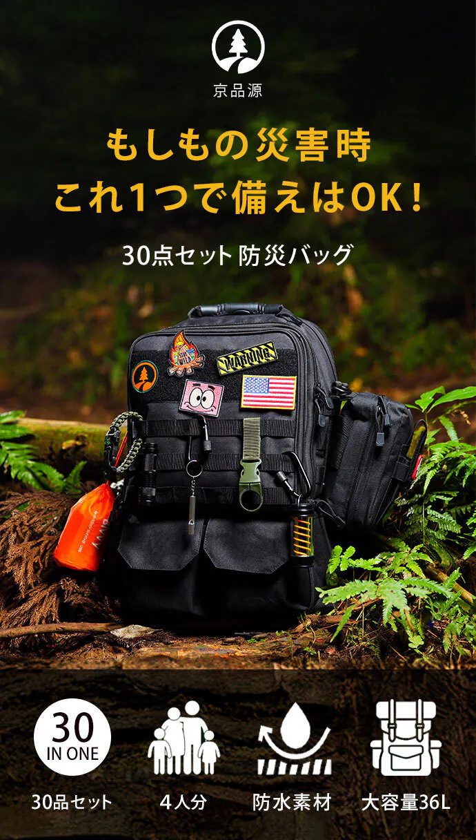 主に家庭用として設計されており、1~4人(大人2人、子供2人)が使用できます。玄関の近くやクローゼットの脇、ベッドの脇などに置くことができます。業界基準を上回る900Dオックスフォード生地を使用し、バックパックの耐久性を高めました。薬や衛生用品、身分証明書のコピー、現金など、身の回りのものを入れておくだけで、緊急時に素早く避難することができます。