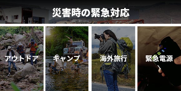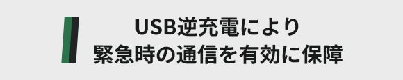 ●USB Type-Cリバースチャージ対応、フラッシュライト搭載で、緊急時にはスマホ充電や照明としても活躍!