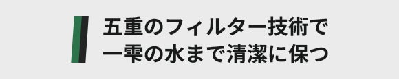 「5段階濾過技術」を通過した水は、限りなく純水に近く、安心して飲める水へと生まれ変わります。