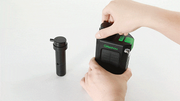 Greeshowは、飲み水を供給するだけでなく、USB Type-Cケーブルを使って、内蔵バッテリーの電力をスマートフォンやラジオ、トランシーバーなどの機器に充電することができます。