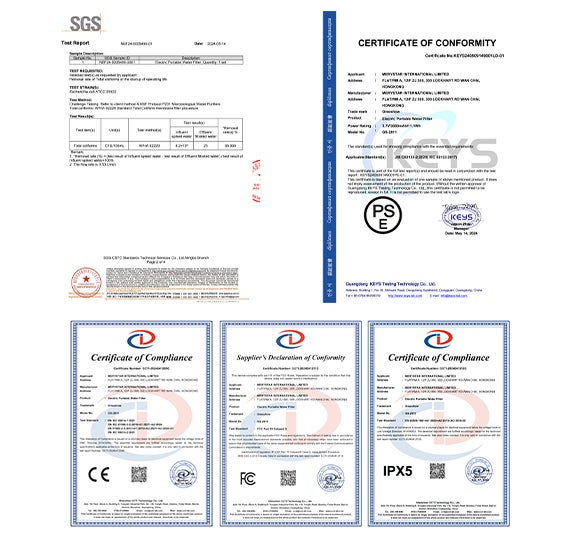 Greeshowは、安全性と信頼性を確保するため、様々な電気安全認証と水質検査認証を取得しています。