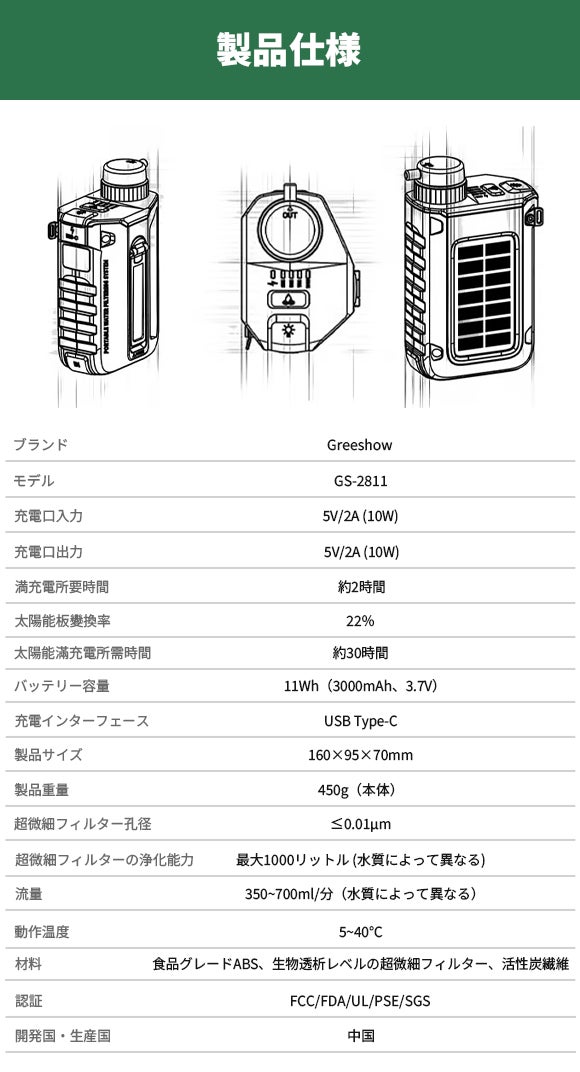 Greeshow GS-2811は、進化したポータブル浄水システムです。
