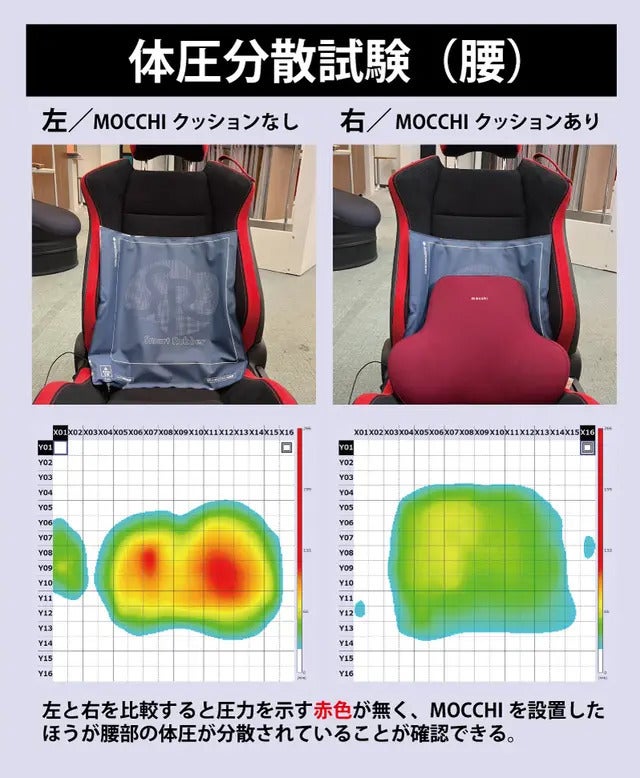 モッチは体にかかる圧力を均等に分散させ、腰への負担を大幅に軽減。特に長距離運転や腰の違和感に悩む方に最適です。