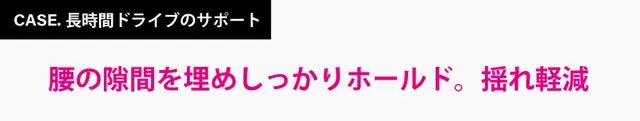 シートとの間にできやすい隙間をしっかり埋めることで、腰を正しい位置で支え、自然な姿勢を維持します。これにより、快適で、より心地いいドライブを実現します。