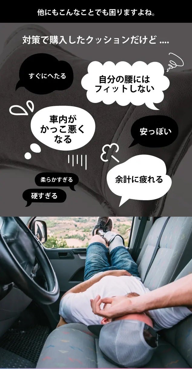 不満が溜まる運転時間: 不快な姿勢での運転は、イライラを増加させ、快適に過ごすどころか、心身ともに疲弊していく。せっかくのドライブが台無しになってしまいます。