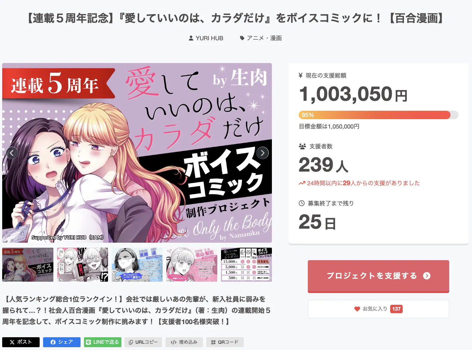 ついに…!ご支援総額が100万円を突破し、達成率95%に到達しました!ここまで応援してくださった皆さまに、心より感謝申し上げます。