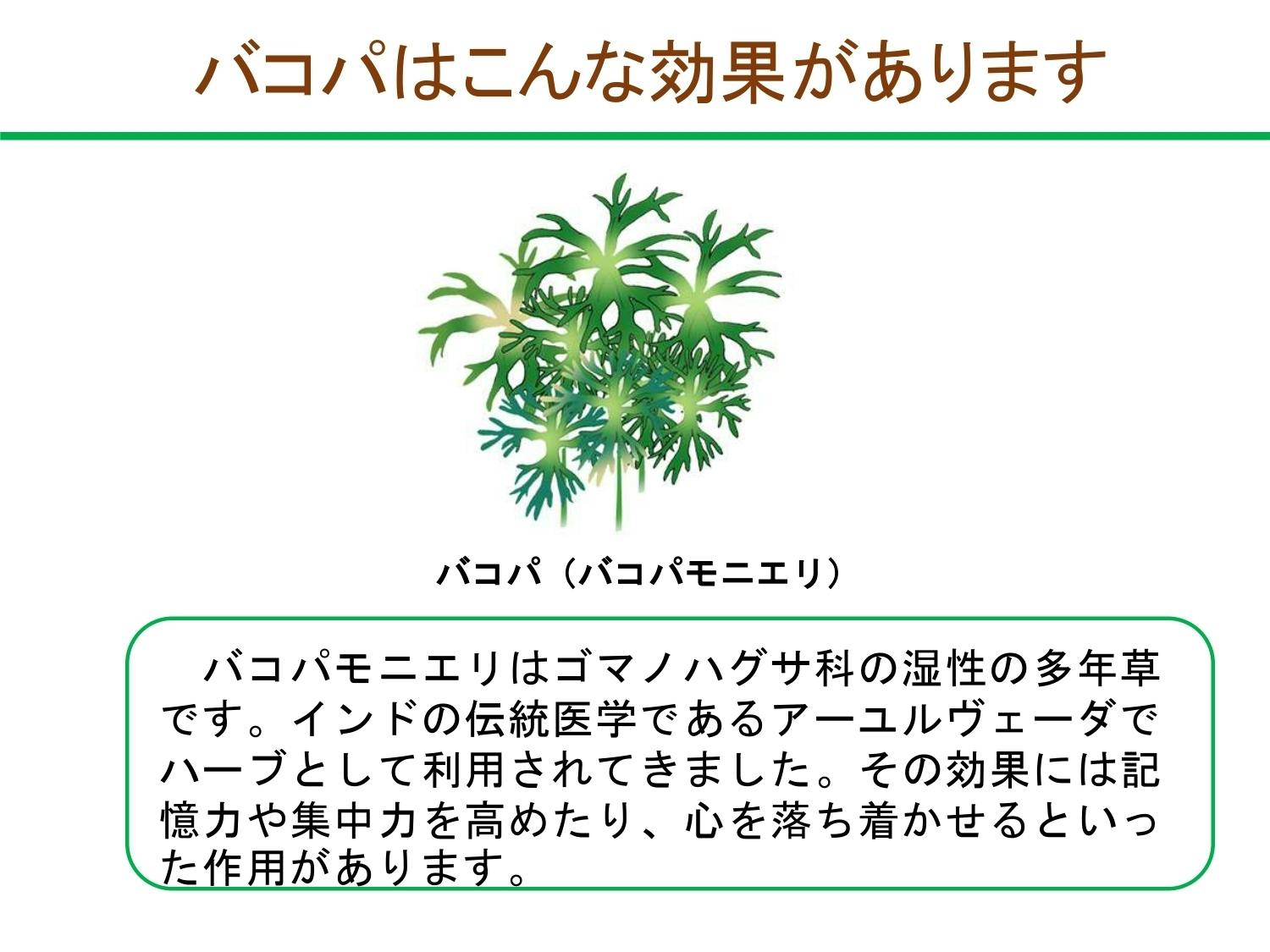 またバコバについてはインドのアユルベーダとして3000年の昔から認知症に効果があることが実証されており、その効果についてはたくさんの文献に記載されています。