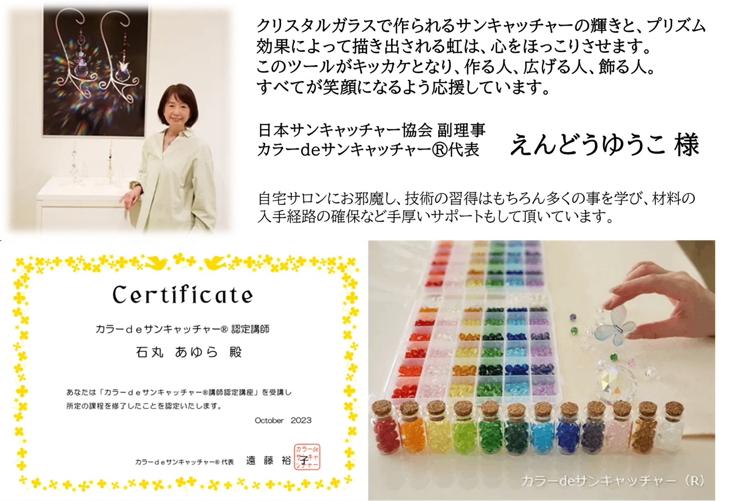 ハンドメイドで作業量に見合う値付けが出来るのではと、その可能性を確かめることも含め『カラーdeサンキャッチャー®』を学びに行きました。