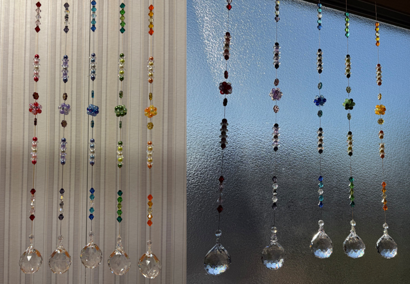 試作を重ね、やっと写真撮影用の5色5本のサンキャッチャーを作ったという状況です。