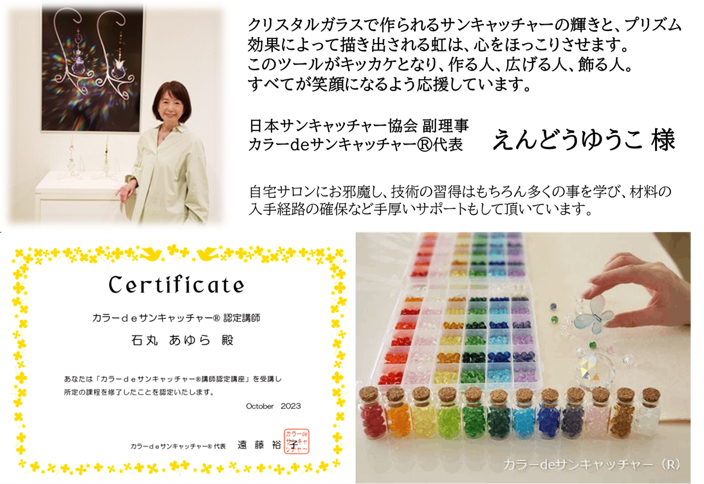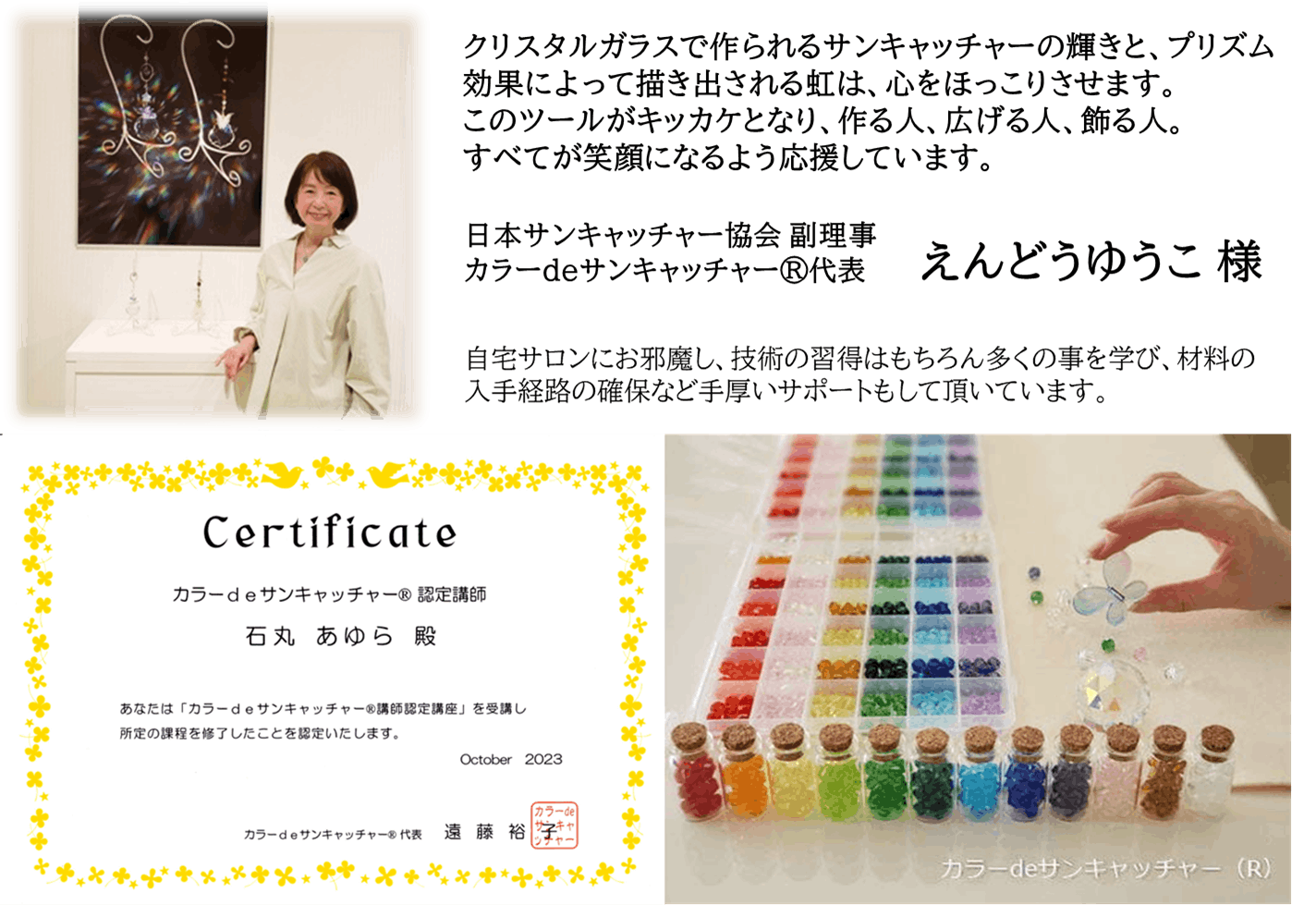 ハンドメイドで作業量に見合う値付けが出来るのではと、その可能性を確かめることも含め『カラーdeサンキャッチャー®』を学びに行きました。
