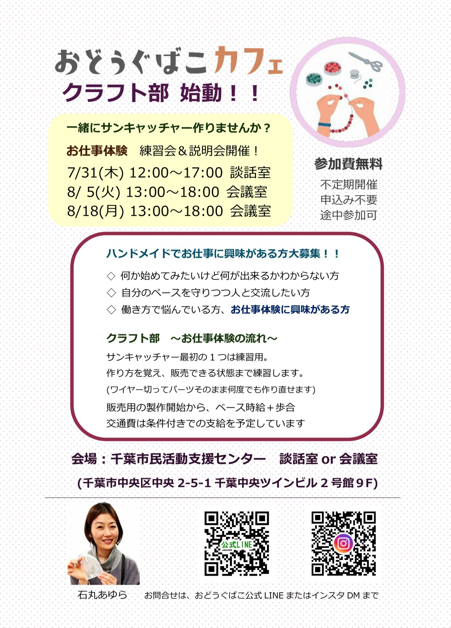 今回のクラフト部の試みにも興味を示して頂きました。チラシを置かせて頂くだけではなく、なんと!なんと!9月2日(火)の午後の枠を頂いて、ちばサポステで出張クラフト部の開催も決まりました!!
