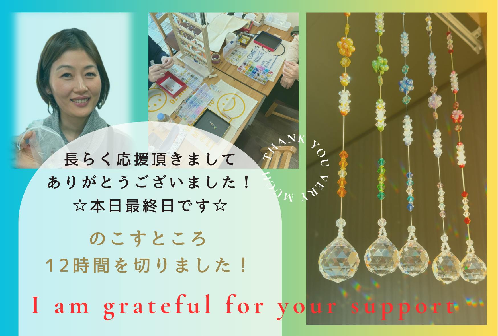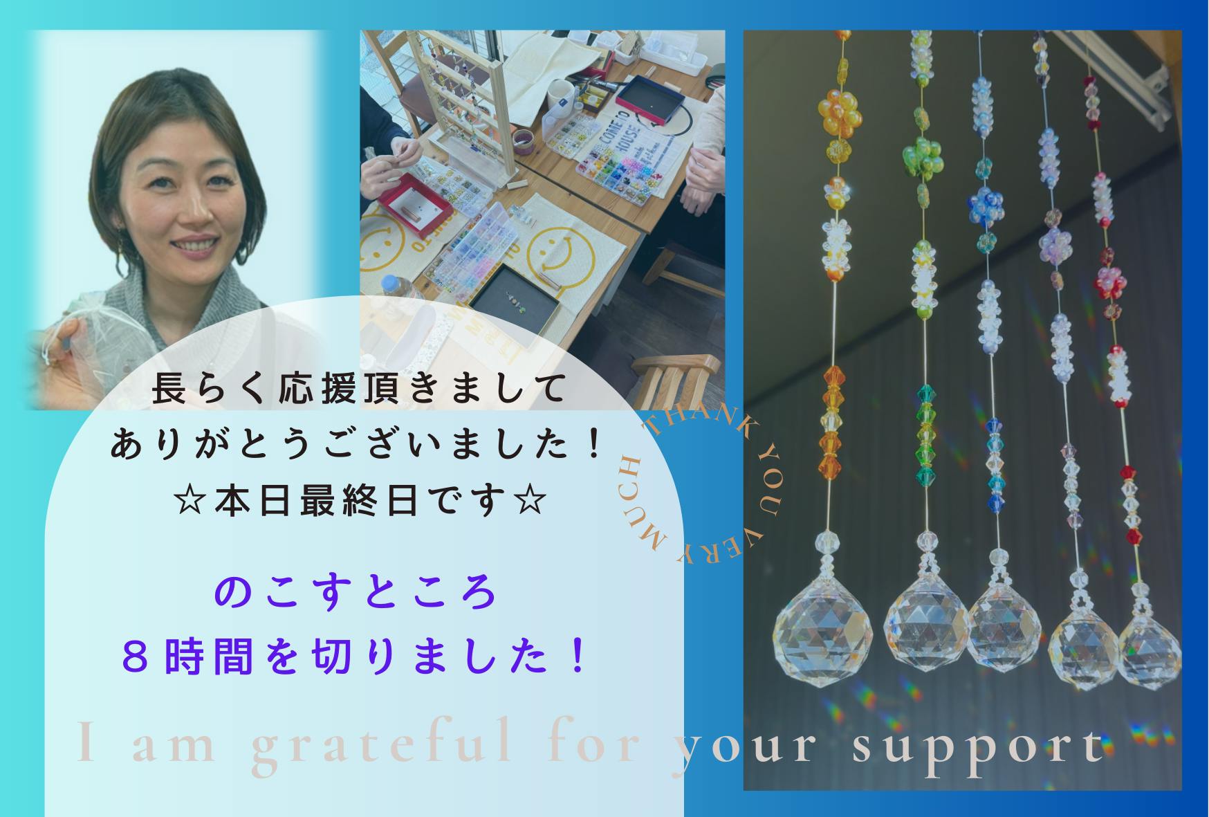 残り4時間切りました!最終日の今日、午後1時から初トークライブも開催しました!動画でサンキャッチャーを見て頂きながら魅力を語り、プロジェクトへの思いをお伝えする機会をと、社会起業家の志を持ち共に学んだ秋田出身の加藤瞳さんのご提案でトークライブさせて頂きました!急遽決定し告知期間もあまりなかったので、参加してくれる方がいるか不安でした!瞳さんと2人でトークしたものを録画するだけでもいいよね!なんて予防線をはっていましたが、開始当初から参加してくださる方がいて本当に嬉しかったです(#^^#)参加してくださった方、参加をご検討してくださった方、気にかけてくださった方、本当にありがとうございました!!告知用の画像や報告用の↑このトップ画像まで作って頂き、司会進行からインタビュアーまでおんぶにだっこで無事に開催できました!そして、加藤瞳さんもまたクラウドファンディングに挑戦中なんです!残り8日という大事な時期に、本当に感謝です(*^-^*)彼女は最初から4段階のゴールを設定してクラウドファンディングに挑んでいます!2段階のゴールを達成し3段階目のゴールに向けてラストスパートというフェイズに入っています!まずはページの閲覧!お気に入り登録だけでもご協力いただけたら嬉しいです♪世界中で「あまざけ」を売りたい!【あまざけアンバサダー1,000人募集します!】ページはこちらから▼https://camp-fire.jp/projects/819750/view?utm_campaign=cp_sp_share_c_msg_projects_showお気に入りの登録もお願いします(*^^*)あっ!今100人目になるチャンスかも!?今日トークライブでファンになった方は急いでください!笑私はあと4時間かみしめて愉しみます(*^-^*)♪