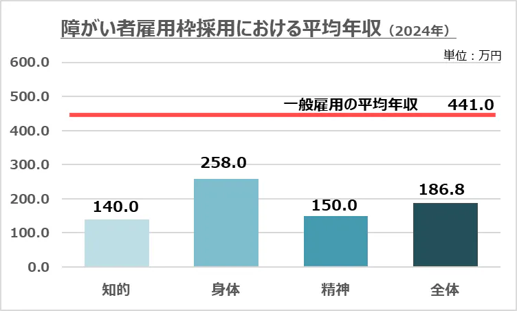 障がい者雇用枠における平均年収は一般雇用枠と比べるとかなり低く、自立ができたとしても、生活の豊かさや充実にはつながりにくい状況が多くあります。