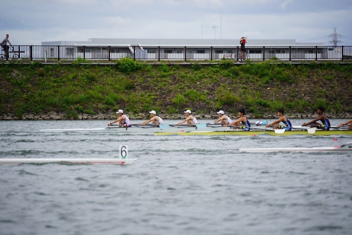 段位男子舵手付きクォドルプルは、スタートダッシュで良いスピードが出ており、見ている側としてはワクワクするようなスピードでした。