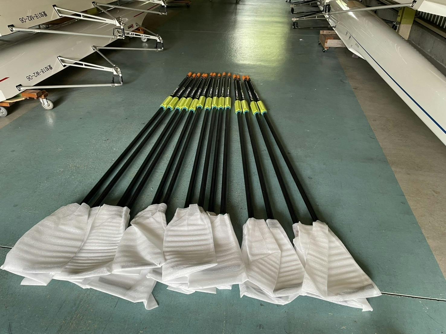 東郷ボートハウスにオールが届き、現役生のみんなと開封しました。