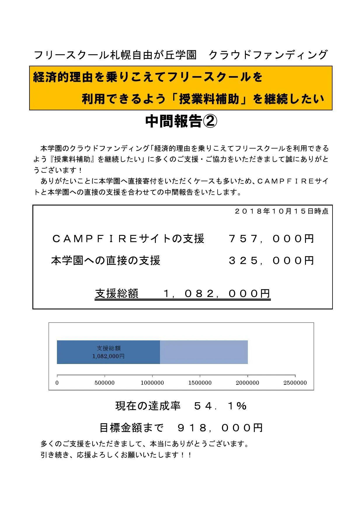 10月15日時点でCAMPFIREのサイト上と学園への振込等を合わせて108万円の寄付が集まっています。