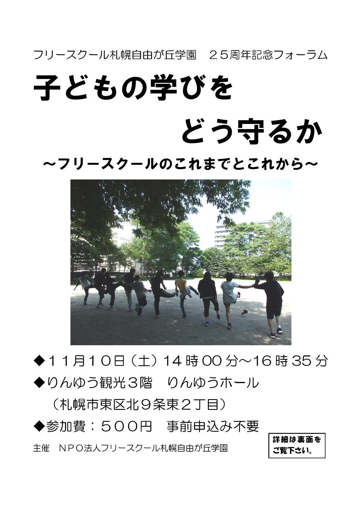 本学園は今年で25周年を迎えます。11月10日(土)に25周年記念フォーラムを行いますので、お知らせします。以下、要項です。