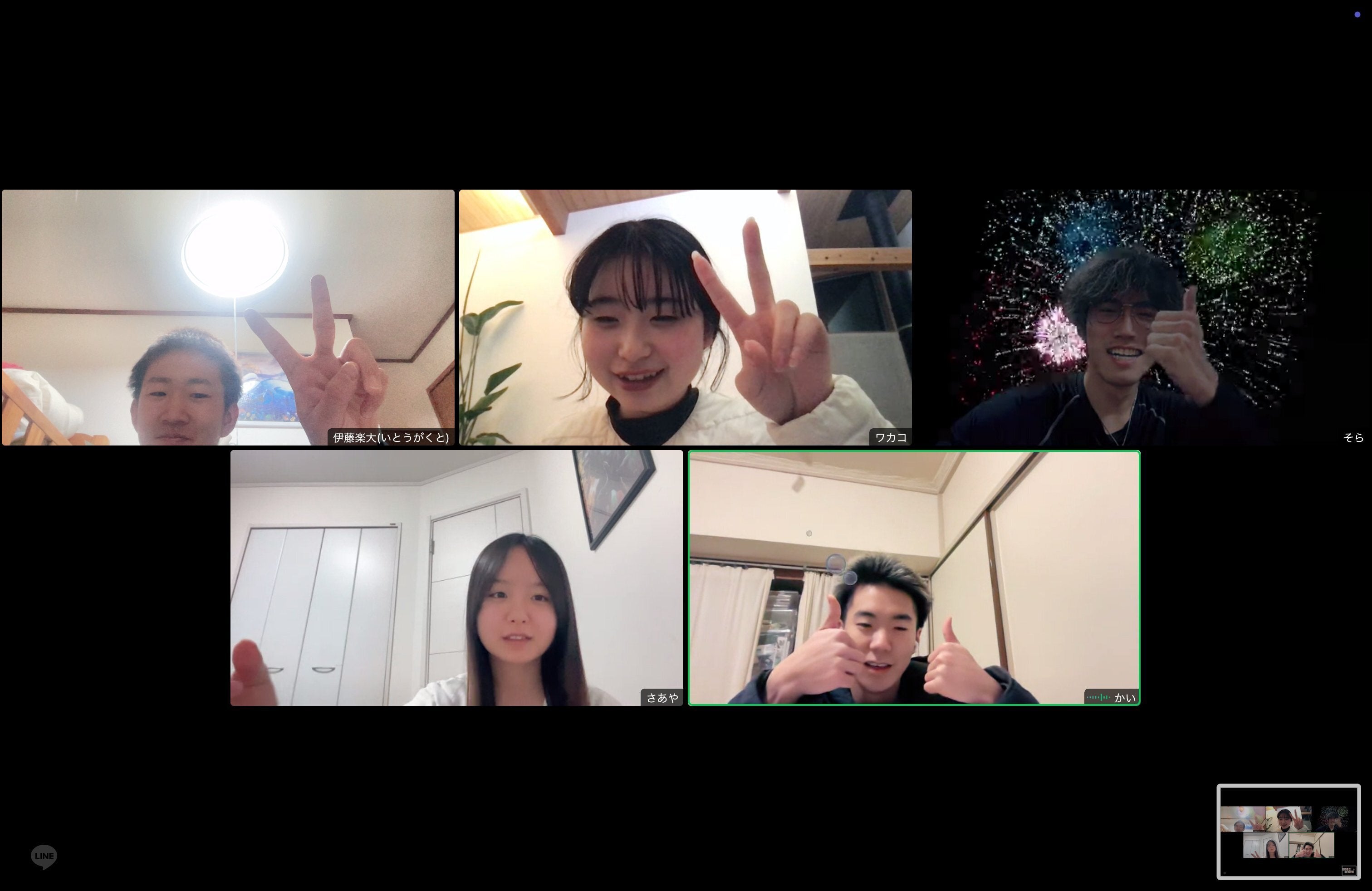 (がくと、そら、わこ、かい、さあや)