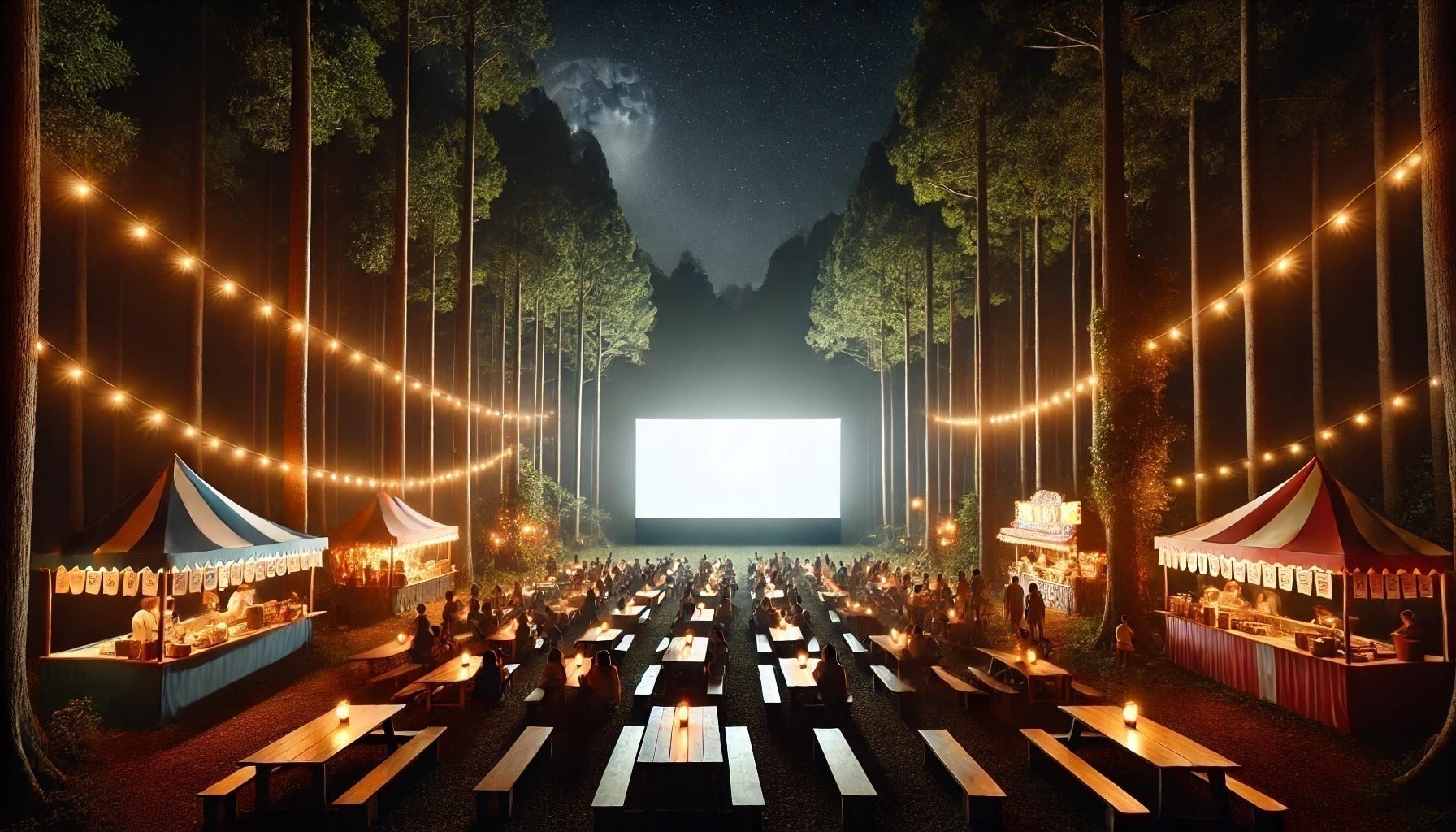 星空の下、神山の森を映画館に変える