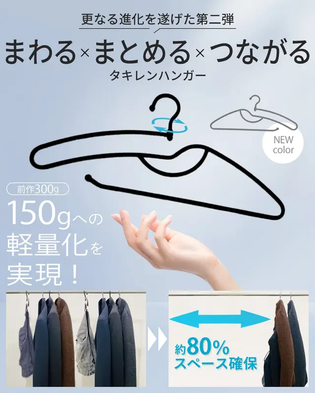 「掛ける収納」で統一して様々な悩みを解消できる多機能連結ハンガー(タキレンハンガー)。