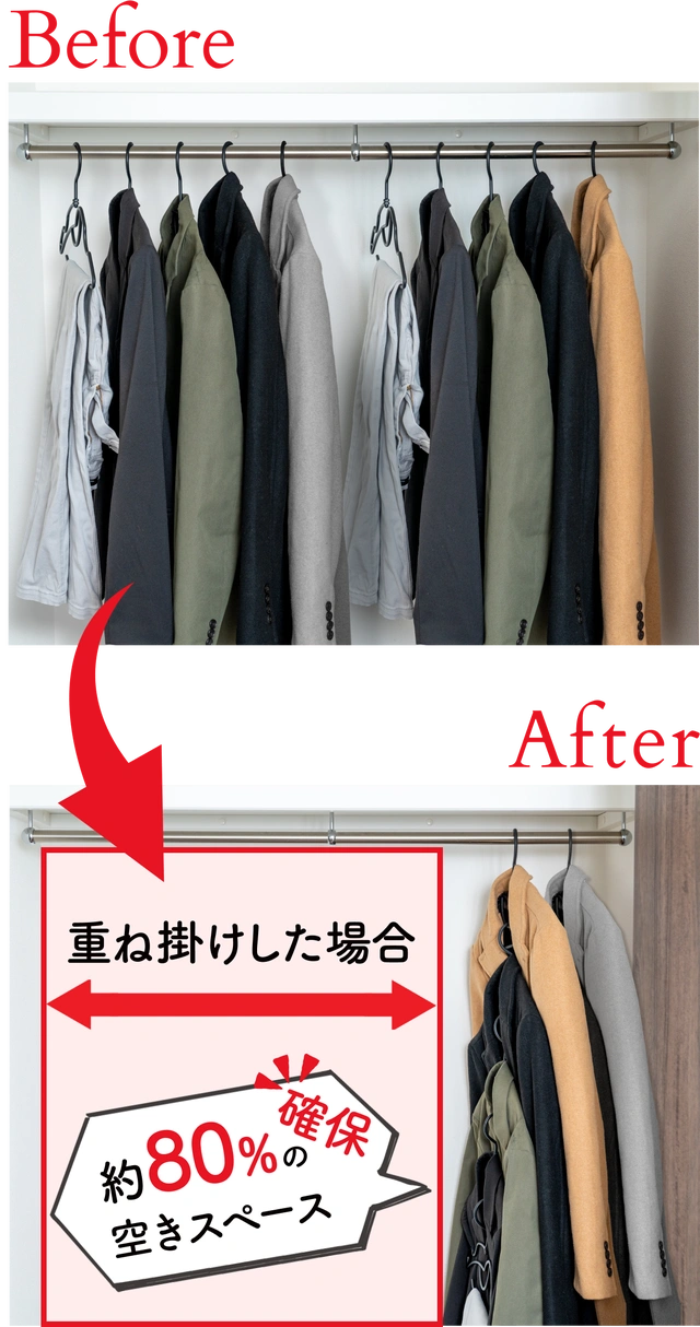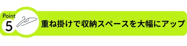 重ねがけをすればお手持ちの衣類をすべて掛けられるので、引き出し収納は不要です。
