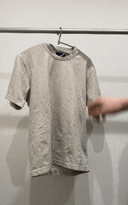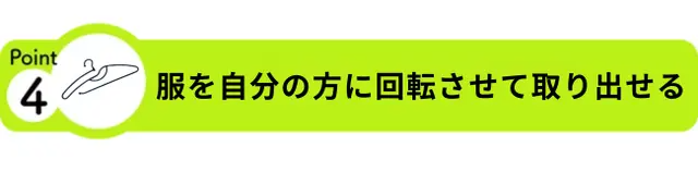 また、衣服を取る時も「空間」を利用して右から左へ滑らせるイメージで行うと、首元を伸ばさずに、すんなりと取ることができます。