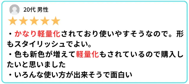 第一弾の欠点は、1本あたり約300gもする「重さ」でした。