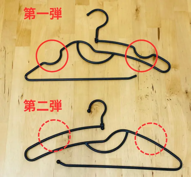 第一弾では、タンクトップやキャミソールなどの肩紐タイプの衣服も掛けられるように、くぼみを入れていました。