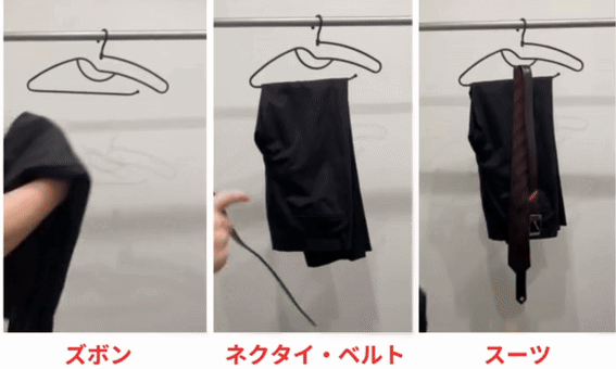 ワンピースなどの着丈の長い衣類はハンガーを2本使って収納することが可能です。