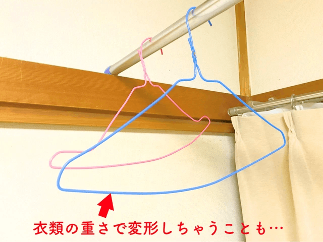 これらのハンガーは強度が低いと衣類の重みで変形することがあります。