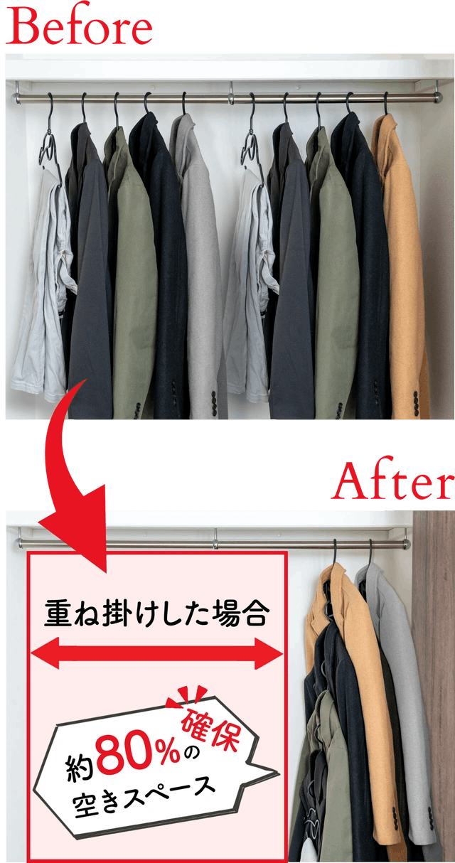 例えば、、、シーズン終わって使用頻度が減ったアウターは縦がけにしスペース削減。