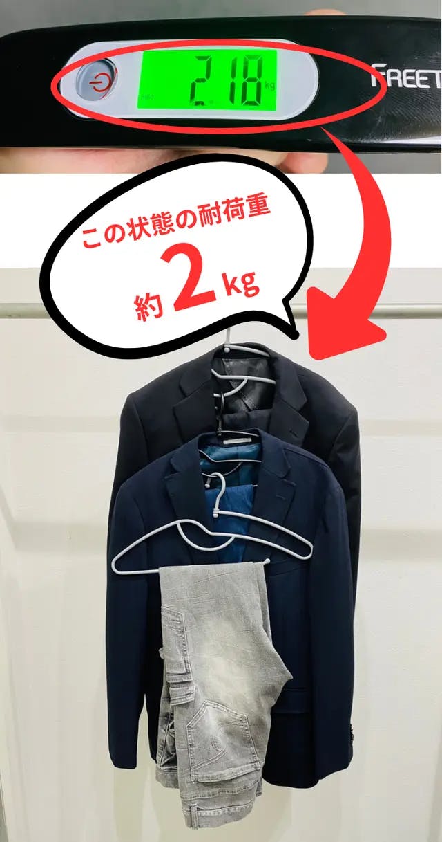 A. 日常で使用する一般的な衣類であれば、Tシャツから冬物のアウターまで対応しております。また、縦に重ね掛けをしても耐えられる仕様になっております。(耐荷重:約2kg)