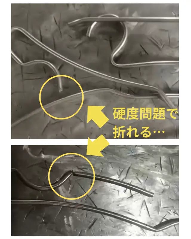 中空状態によって硬度が足りなくなり、くぼみを入れてしまうと折れてしまいました。。