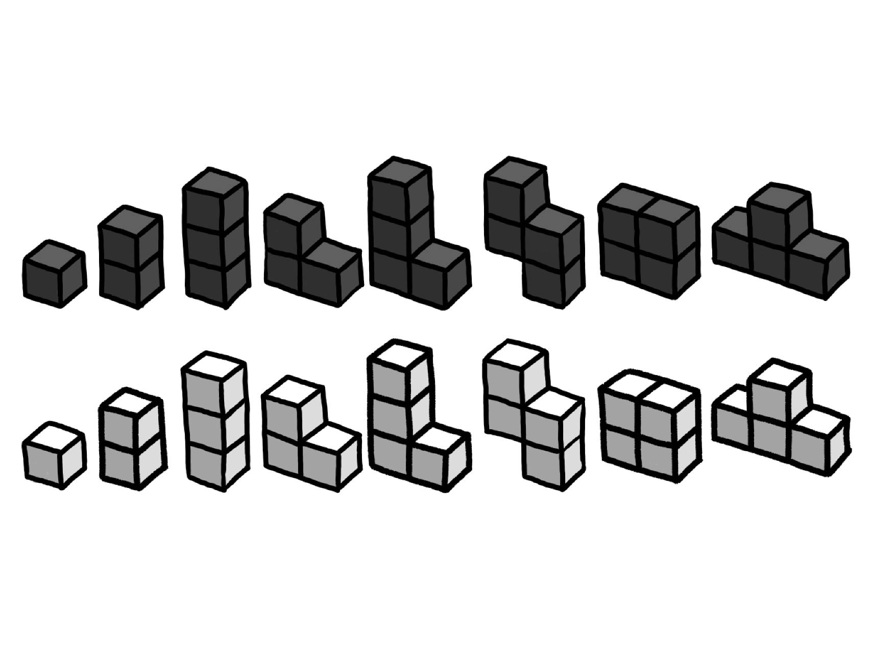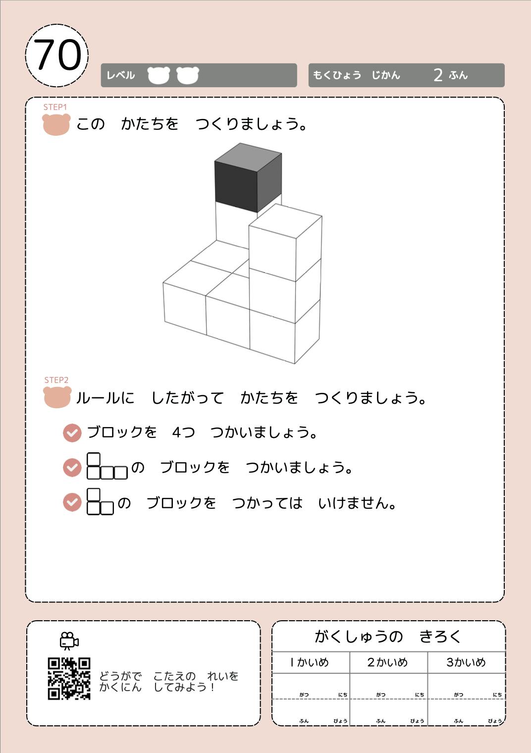 同じ立体でも、その組み立て方は多様です。本ドリルでは、各問題に独自の「ルール」を設定することで、より深い思考力と創造的な問題解決能力を効果的に鍛えます。