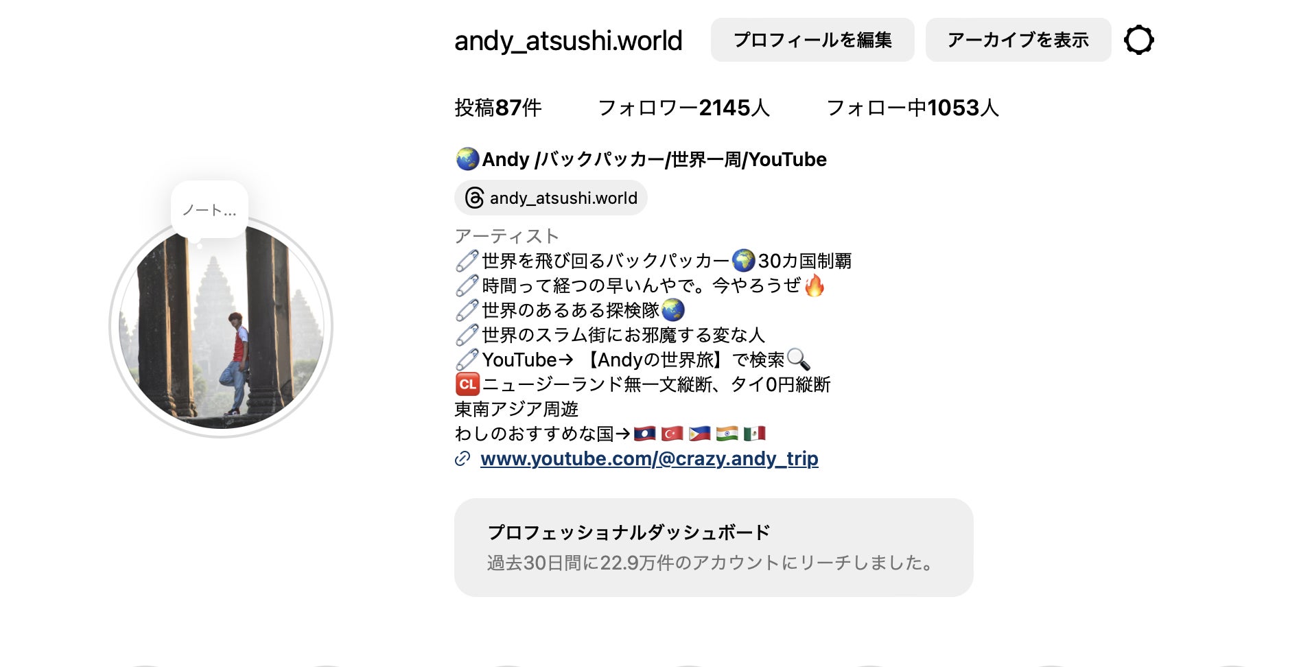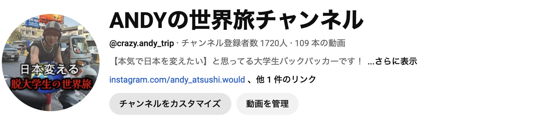 現在は大学に行きながら長期休みで世界に飛び回りYouTube撮影をしてます。