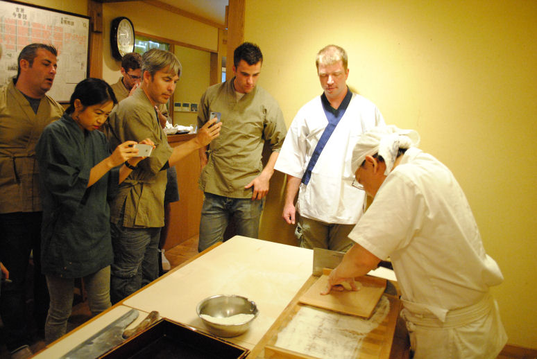 蕎麦打ちは職人さんの心意気にふれてもらうプログラムです。お蕎麦屋さんでプロから直伝で教わる時間は世界遺産を見るより価値があるように思えます。できあがったらご主人の打った蕎麦と食べ比べをします。