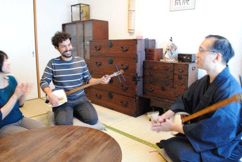三味線のプログラムに参加するのはギターやベースなど音楽をやってる人が多いですが講師が英語を話せなくても同じジャンルだとすぐに仲良くなれます。