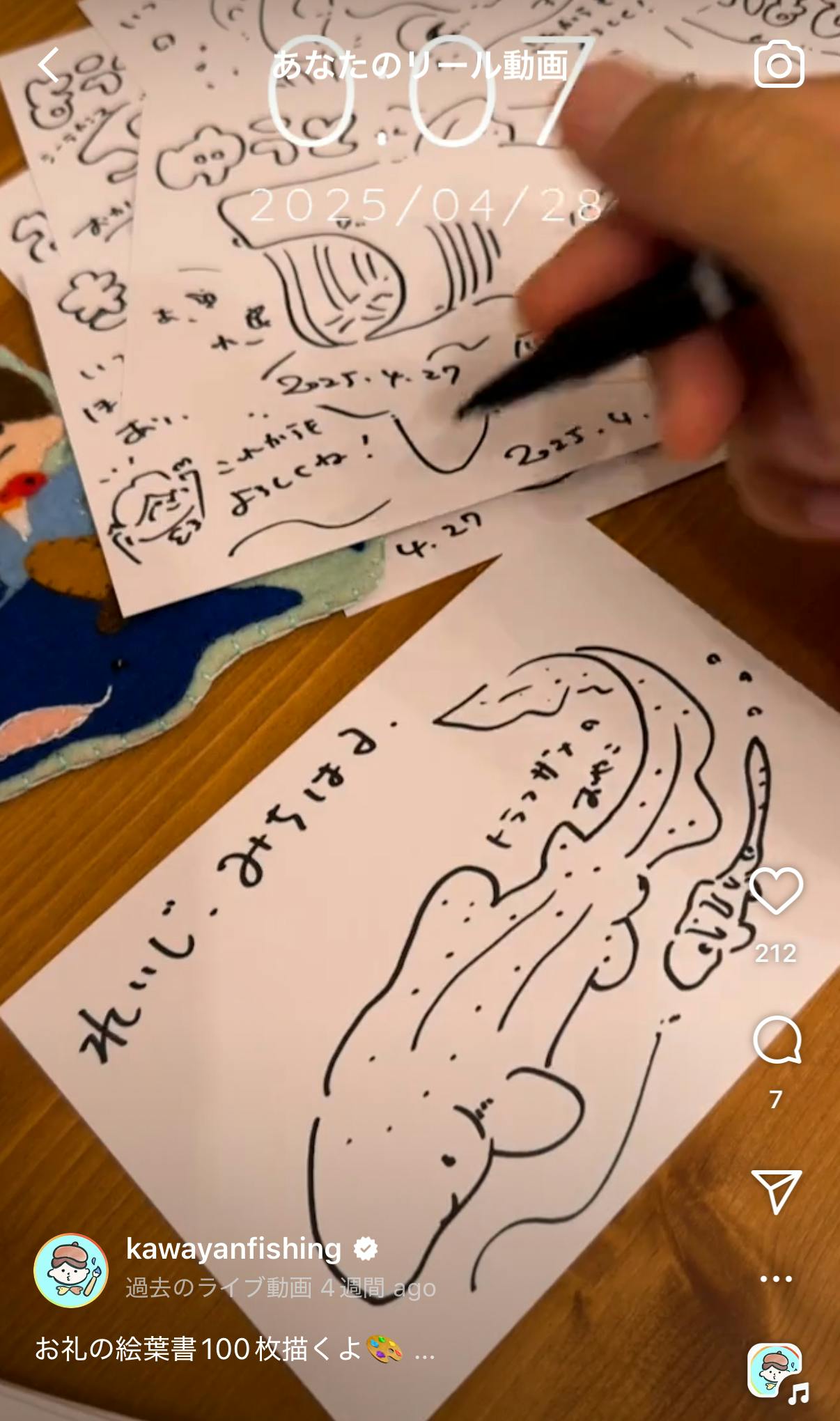 2025/05/25 18:56【おわびとおねがい】こんにちは!さかなのおにいさん かわちゃんです。このたびは、**クラウドファンディングのリターン「直筆の絵葉書き」**を申し込んでくださったみなさまへ、大切なお知らせとお願いです。先週、心をこめて絵葉書きを1枚ずつ描き、すべて発送いたしました!が……その後、「まだ届いていないよ〜!」というお声をいくつかいただいております。とても申し訳ない気持ちでいっぱいです。住所はクラファンにご記入いただいたものをもとにお送りしているのですが、どうやら一部の方に届いていない可能性がありそうです……!そこで、もう一度!かわちゃんが新しく絵葉書きを描いて再送させていただきます。つきましては、確実にお届けするために、お手数ですが下のGoogleフォームにて【正しいお届け先住所】を改めてご記入いただけますでしょうか?【ご記入フォーム】https://forms.gle/q9FkMF5iWFjCEmD47【ご記入締切】2025年6月1日(日)※絵葉書リターンの支援をしてくださった方のみ6月にあらためて、お届け先に向けて心を込めて絵葉書きをお送りします!クラウドファンディングで応援してくださった皆さまには、少しでもワクワクや「届いた!」の喜びを感じてもらいたいので、二度目のお届けも、もちろん全力で描かせていただきます!このたびはご不便をおかけし、本当に申し訳ありませんでした。それでも応援してくださるみなさんに、ありがとうの気持ちを、もう一度お届けさせてください!どうぞよろしくお願いいたします! もっと見る