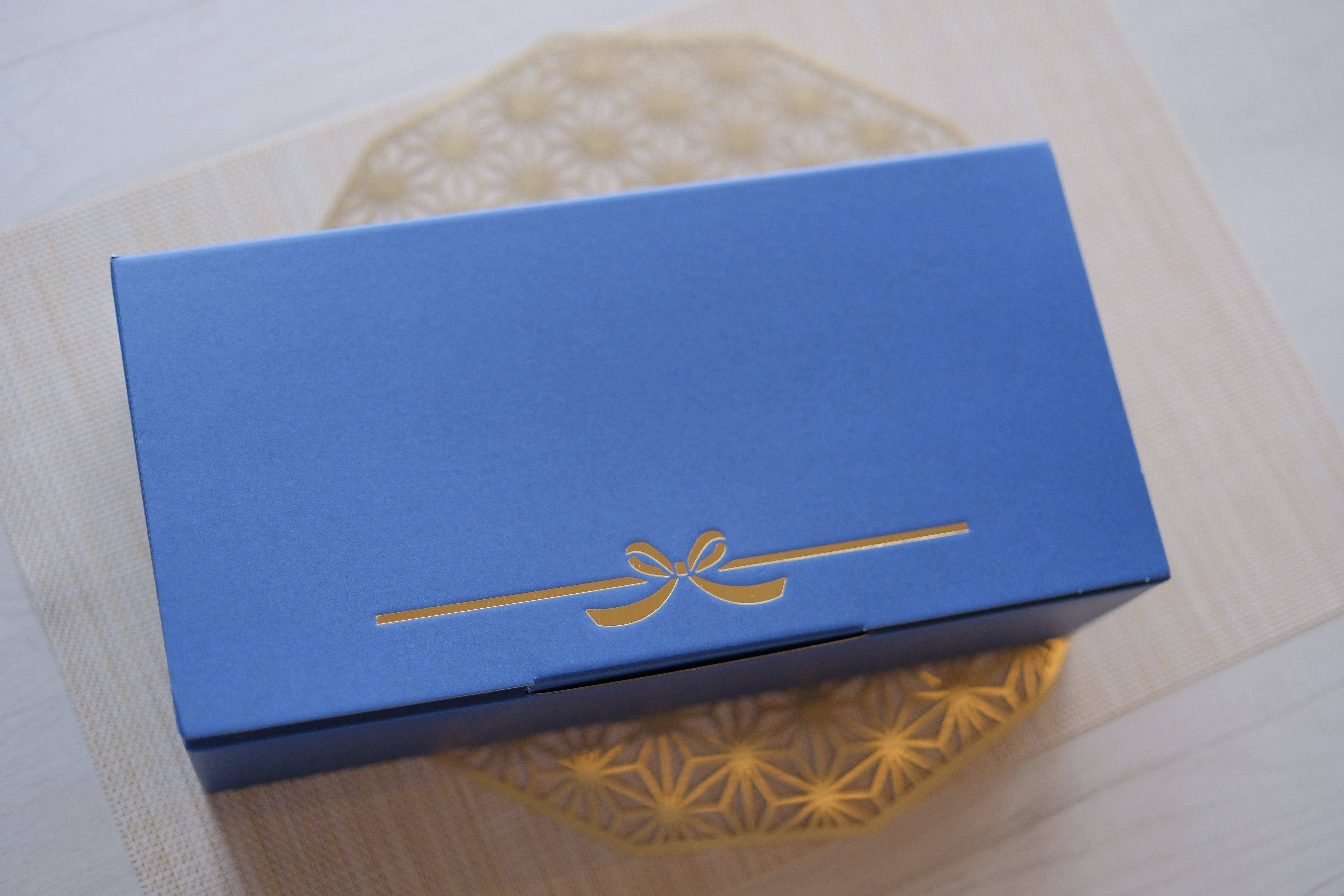 (オリジナルデザインの水引を外箱に箔押し)