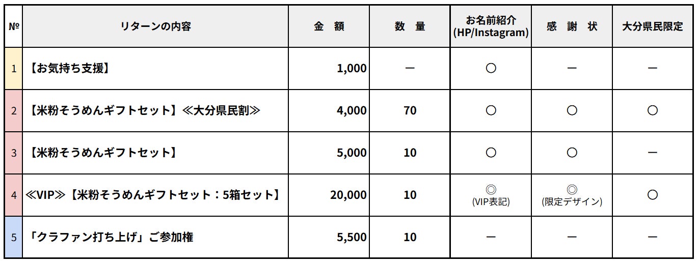 リターンの詳細につきましてはそれぞれの概要欄をご覧ください。