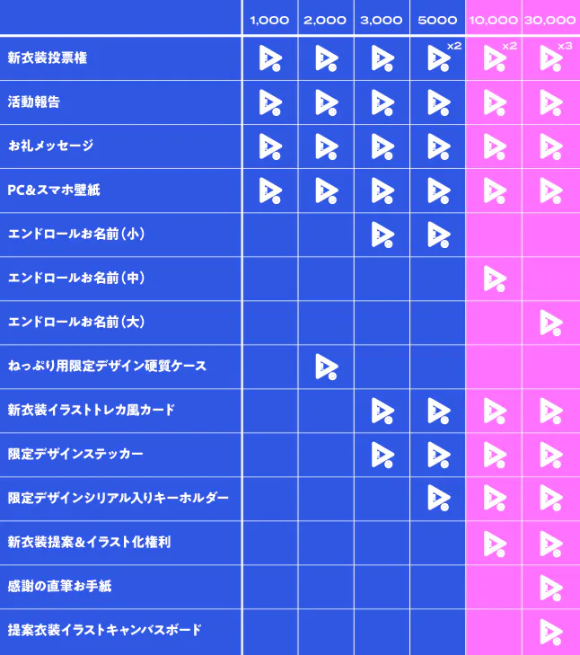 どのコースに参加していただいても新衣装の投票に参加でき、新衣装案提案の場合は=最低でも絶対にイラスト化する!と捉えていただけるとわかりやすいかと思います。