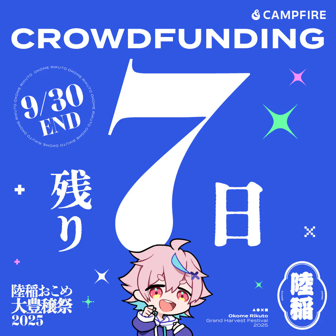 クラファン終了まで残り1週間となりました。最後まで大豊穣祭を一緒に盛り上げていただけると嬉しいです!引き続きどうぞよろしくお願いいたします。