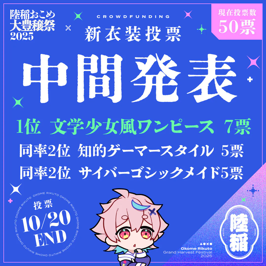 新衣装投票も折り返しに入り、現在50票ほど投票いただいております!