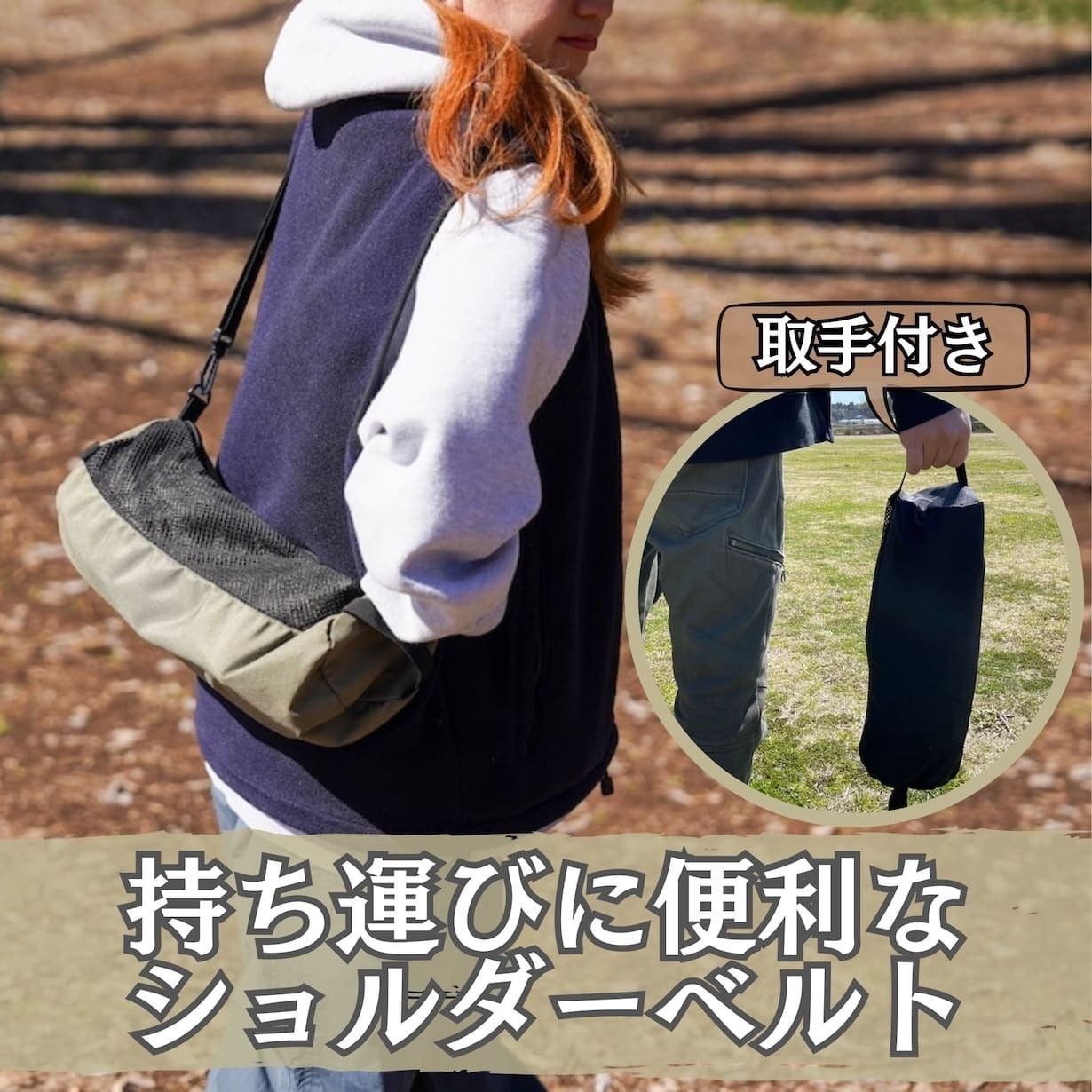 ショルダーベルト付きで、荷物が多いキャンプやBBQでも手がふさがらず楽々持ち運べます!